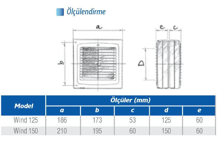 BLAUBERG Wind 150 Cam Tipi Aspiratör ( 295 m3/h ) ses 41dba/3mt )